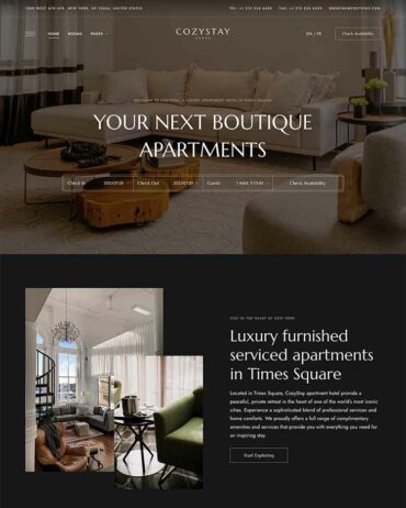 The dark wood panelling and furnishings, red-draped fourposter bed, and black stone bathroom evoke the charm of a secluded Sierra Nevada.